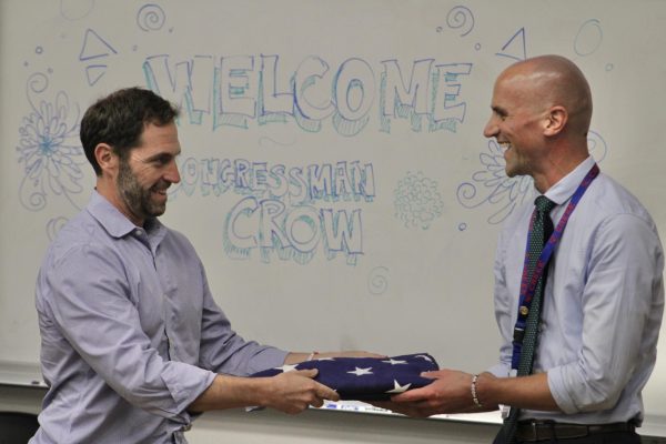 Congressman Jason Crow (D-6) visited debate classes on Oct. 6 at Shillinglaw to speak about his career in politics and his life as a representative. After a short introduction, most of the time was left to allow students to grill him on his policies, his beliefs, and his past.